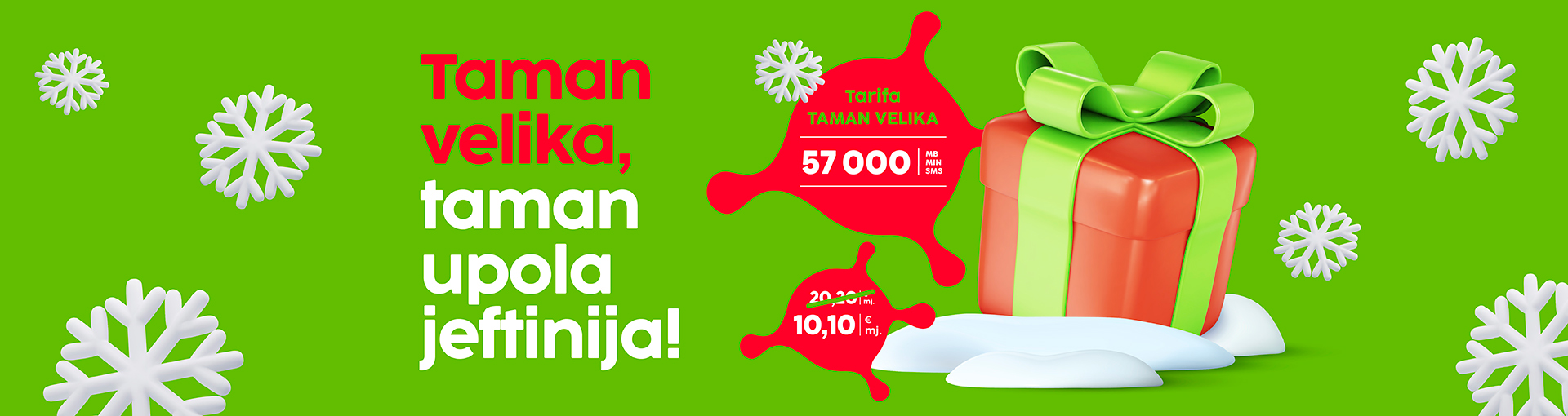 Promocija 50% popusta na Taman Veliku vrijedi za sve korisnike i primjenjuje se 12 mjeseci, dok se promocija na Taman Srednju i Taman malu primjenjuje 24 mjeseca od trenutka aktivacije.